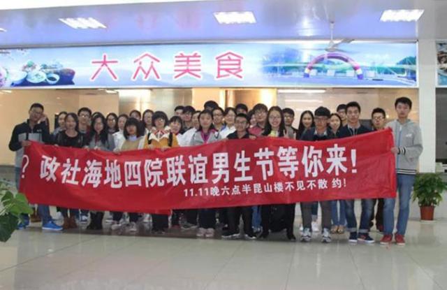 11月11日下午六点,夜色悄然降临,由地海、社院、海外、政管四院同学精心策划的男生节联谊活动也拉开了帷幕。会有怎样的精彩呢?