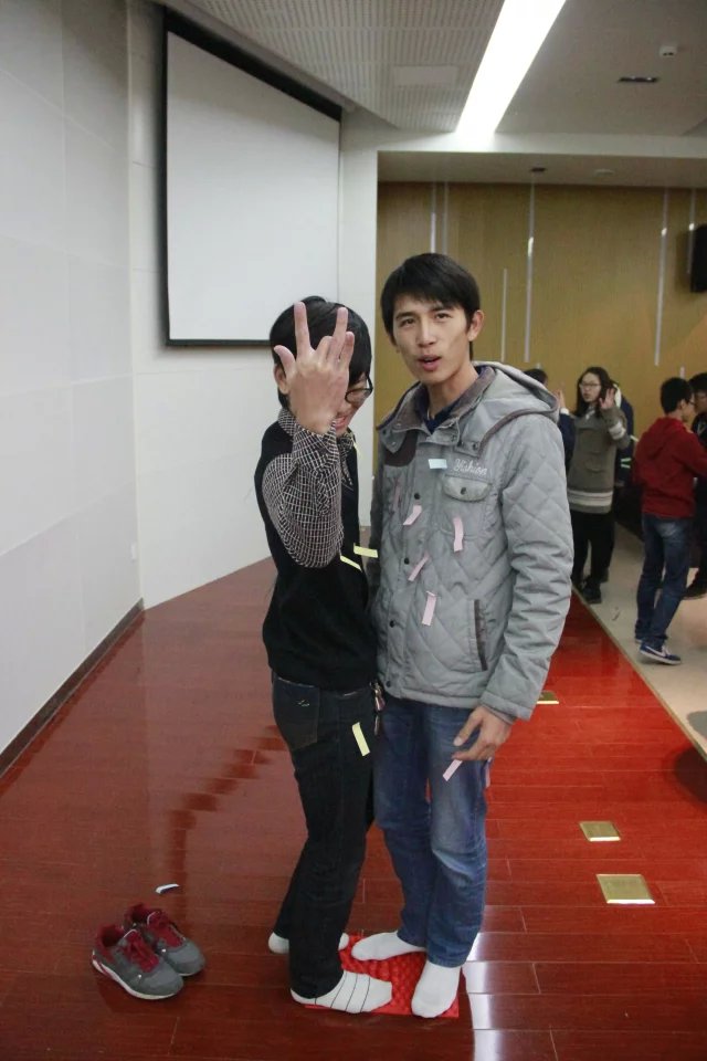 没想到男生们的动作都挺快的,不一会儿就找到了那个属于自己的伴侣,既然如此,那还等什么,赶快进行第二环节的闯关游戏吧。第一关十分有趣,首先工作人员在参与者的身上贴满便签,然后在魔性浪漫的音乐声中,每对伴侣在指压板上尽情挥舞,努力的甩去一切烦恼。脚底的酸爽和心中的愉悦让每对参与者都乐享其中!第二关你比我猜的游戏也让两人增强交流,很有爱啊有木有~~~