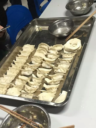 游戏过后,大家一起去食堂包饺子。饺子,在中国传统文化中,寓意圆满哦。包饺子时,就愈发显现出姑娘们的贤惠,汉子们的体贴。